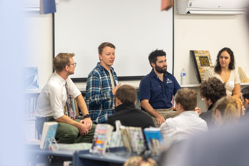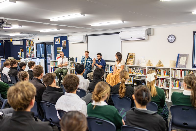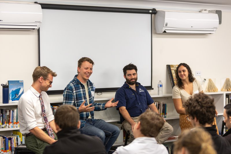 Their diverse paths spanned various industries. Among them - a florist and small business owner (Jess), a data specialist for an NGO (Paul), an ANSTO engineer (James), and an award-winning hairdresser (Hannah). Thanks to these ex-students for sacrificing their time to talk to our students about life outside the school walls!