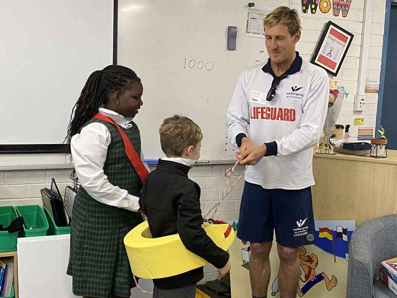 On Tuesday, August 8, students in Years 2, 4 and 6 were visited by local lifeguards Matt and Eli as part of the Wollongong City Council's surf education program.