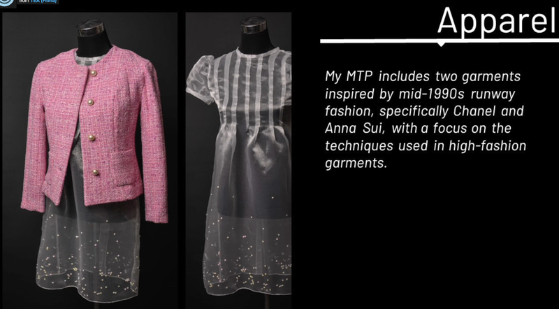 "My Major Textiles Project was inspired by mid-1990s runway fashion, specifically Chanel and Anna Sui, and the use of couture techniques in high-fashion garments.