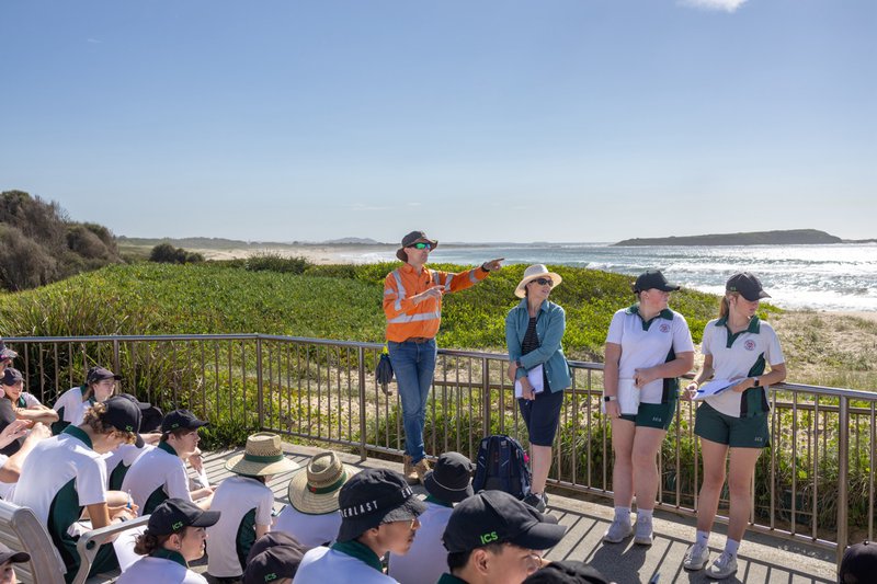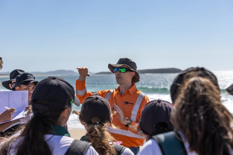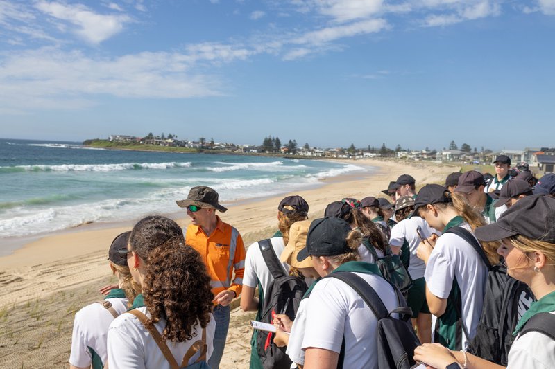 Year 10 started the day by meeting Mr Scott Morrison, the Principal Geotechnical Engineer and Wollongong Area Manager of SMEC Australia. Scott is also an ICS parent. The students had already met Scott and his colleague, Mr Anthony Folan (based in Brisbane) via Zoom, learning about the new seawall design and how it was more suited to the dynamic nature of Warilla Beach than the management strategies used in the past. The seawall’s limitations and sustainability were also considered.